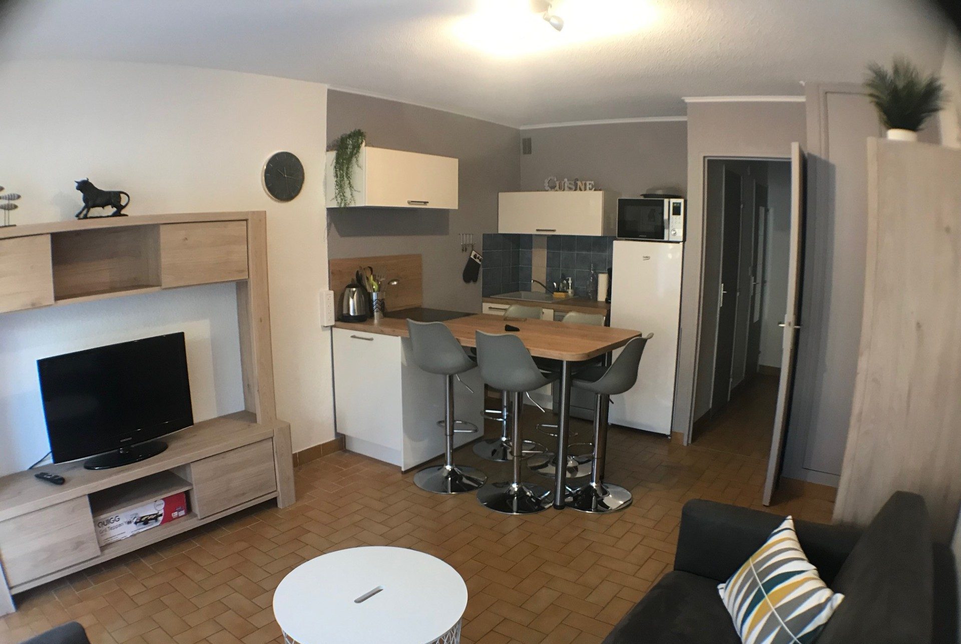 Situé dans le quartier calme du Boucanet, à seulement 5 minutes de la plage, dans la résidence sécurisée et arborée Camargue Village, il offre tout le confort pour un séjour en famille : cuisine entièrement équipée, salle de bain avec douche, WC séparé, salon avec canapé-lit et lit bébé, ainsi qu’un salon de jardin pour vos repas en extérieur.